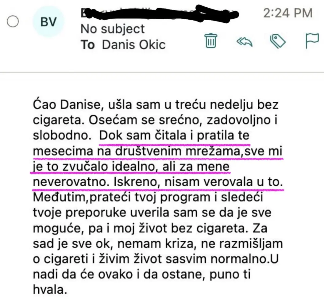Pogledaj i pročitaj iskustva i utiske ljudi kojima sam ja pomogao da se oslobode nikotinske ovisnosti.